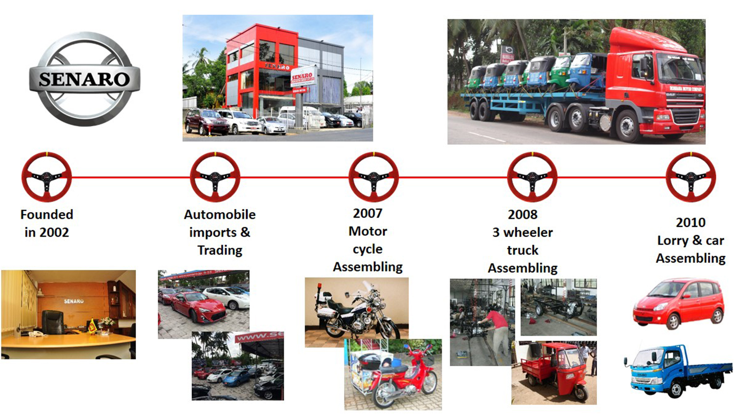 SENARO started its’ business with importing of motor cycles and then moved on to having its’ own branded motor cycle “SENARO”. It became very popular within a very short time and the name was well known especially in rural areas.