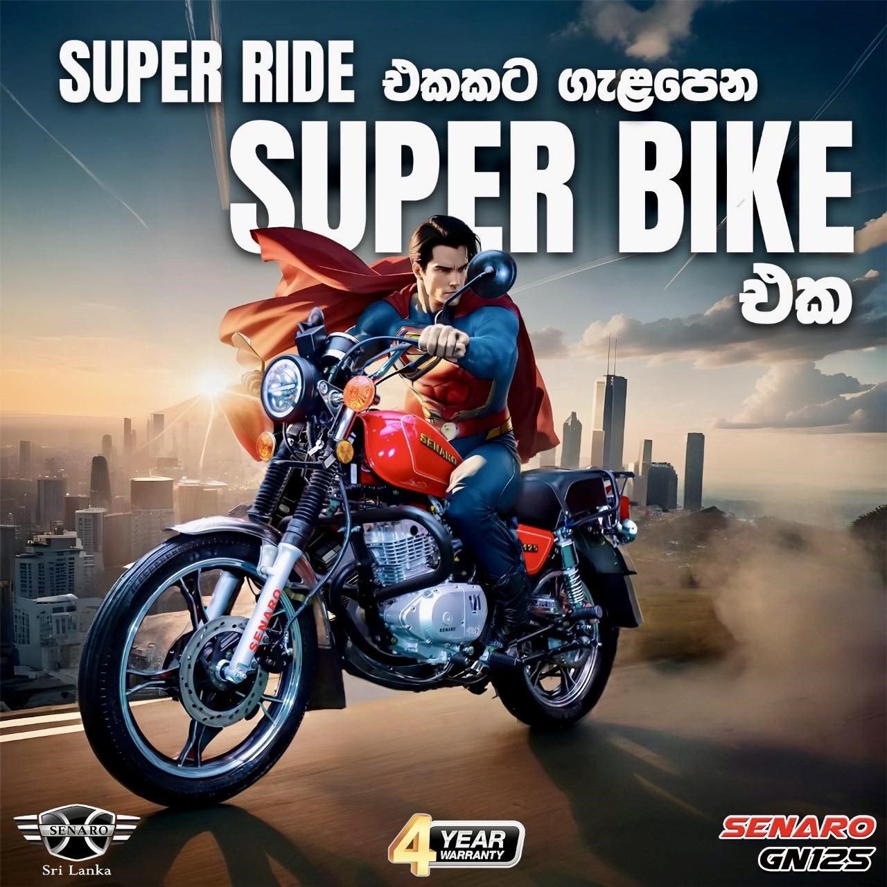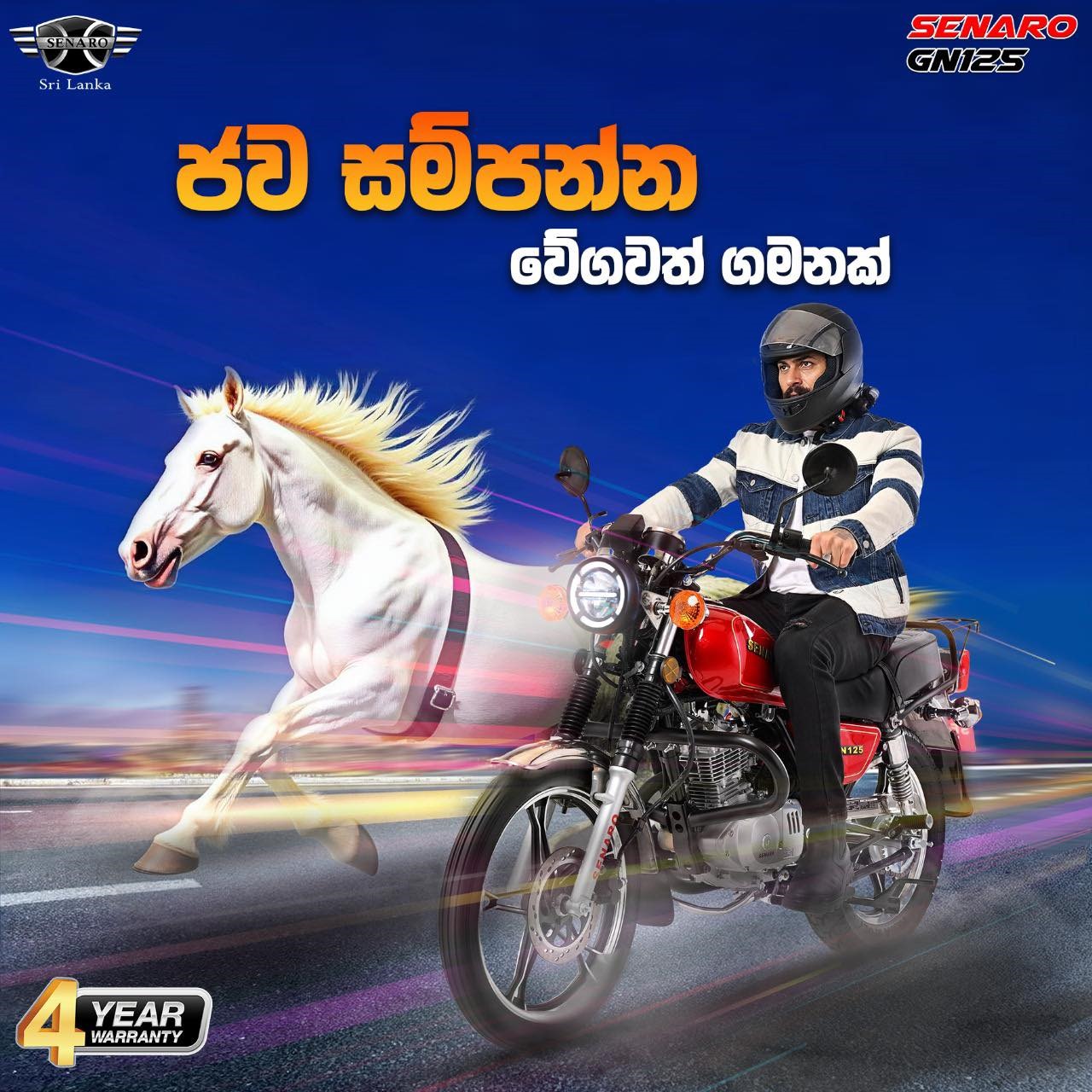Engineered for Excellence The Senaro GN125 is not just a motorcycle; it’s your ticket to adventure! Designed to perform and built for the long haul, this bike ensures you reach your destination in unparalleled comfort.Adventure Awaits Experience the thrill of adventure touring like never before. Whether you’re navigating bustling city streets or cruising along winding mountain roads, every ride on the Senaro GN125 is a memorable journey.Ride with Confidence With our comprehensive warranty, you can ride with peace of mind, knowing you’re backed by a commitment to quality and reliability.