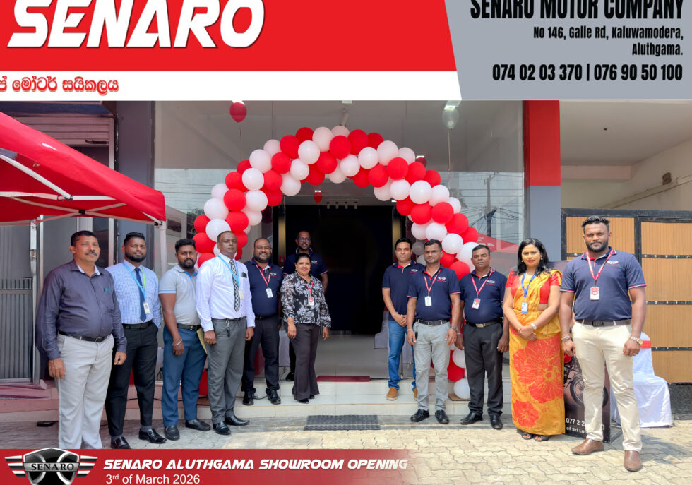 Senaro Sri Lanka has expanded its presence with the opening of a new motorcycle showroom in Aluthgama. The new showroom strengthens the company’s commitment to bringing reliable motorcycles and quality service closer to customers.